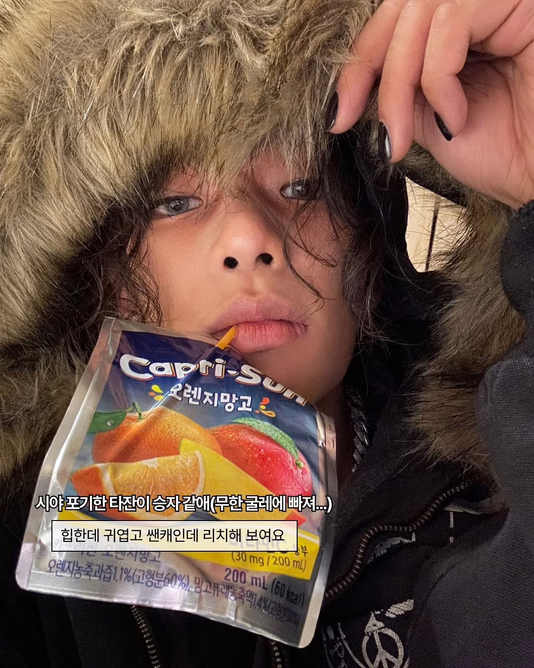 어느 아이돌이 이렇게 불곰 룩이 잘 어울리나요