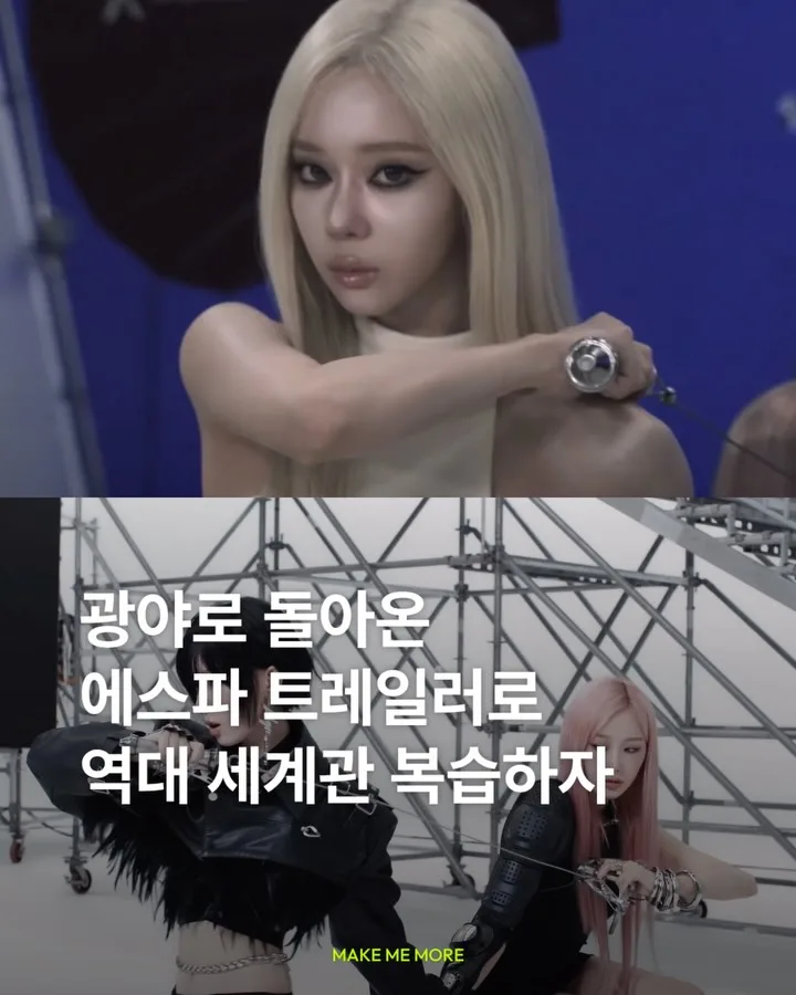 이번 영상의 감독을 맡은 손승희(@samsonii)는 ‘aespa의 5년치 세계관 믹싱’이라고 언급하며, 그동안의 뮤비 속 다양한 장면들을 오마주 했음을 직접 밝혔습니다. 쇠맛 가득한 에스파의 오마주 장면들이 궁금하다면 슬라이드를 넘겨 확인해 보세요. 에스파의 새로운 앨범은 5월 29일(금) 오후 1시 발매됩니다🩶 다 맞춘 마이들 있나요? 일단 저요 🙌🏻