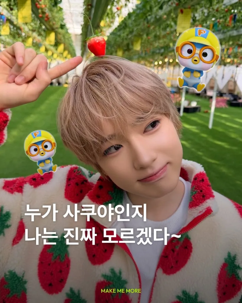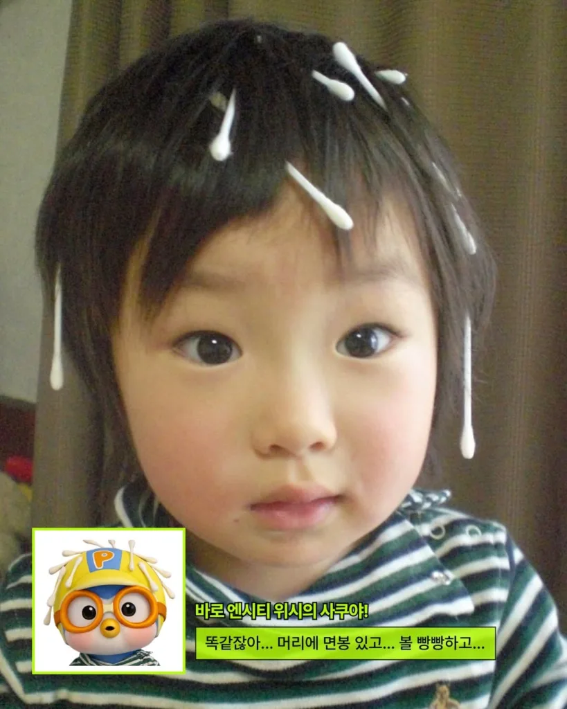 뽀로로(@pororo_official.ig) 공식 계정에 올라온 아기 뽀로로의 사진📸 그런데 이 아기 뽀로로… 어떤 아이돌의 아기 시절과 많이 닮았습니다. 통통한 볼… 머리에 꽂혀있는 면봉들… 바로 엔시티 위시(@nctwish_official)의 사쿠야의 어린 시절을 패러디한 것인데요! 아기 사쿠야와 아기 뽀로로 너무 똑같이 생겼잖아요🥹 뿐만 아니라 최근 엔시티 위시 인스타에 업로드된 뽀로로 음료를 마시는 사쿠야의 모습까지 패러디하며 사쿠야에 대한 애정을 드러내기도 했습니다. 이렇게 된 거 에디터는 뽀로로 X 사쿠야 공식 콜라보 기대해 봅니다 🙏🏻