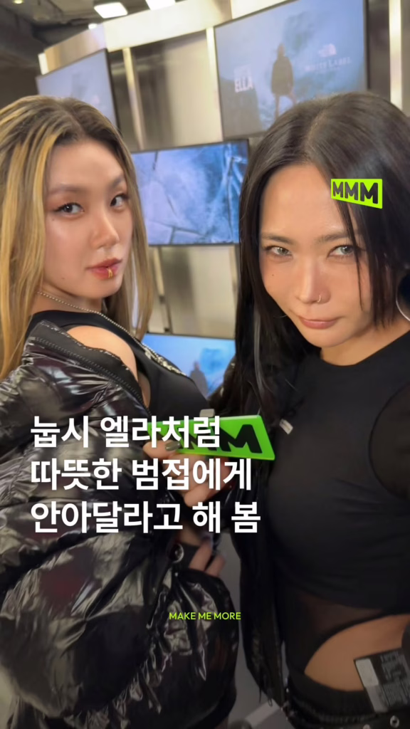 ‘눕시 엘라’를 입고 노스페이스 화이트라벨(@thenorthface_whitelabel) 팝업을 찾은 범접을 mmm이 만나봤습니다! 기본 눕시보다 루즈한 핏에 셔링 디테일로 여성스러움을 더한 ‘눕시 엘라’를 각기 다른 매력으로 소화한 범접 멤버들 🐯 지금 영상으로 확인해 보세요~!