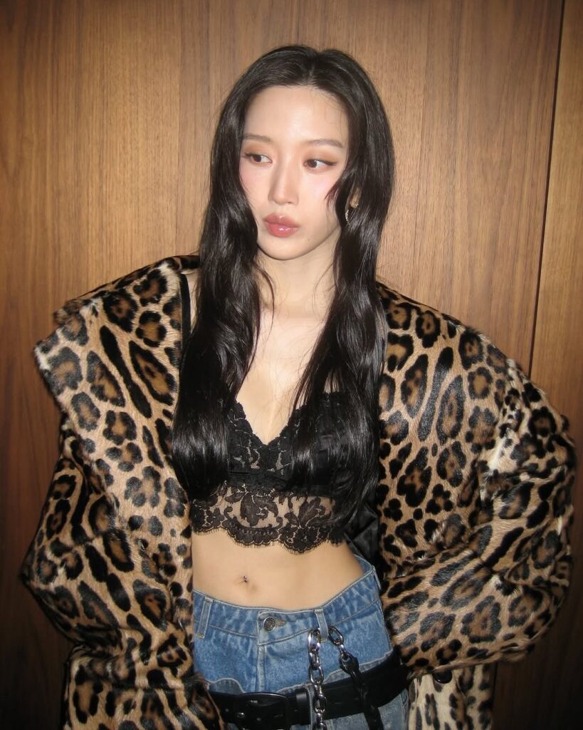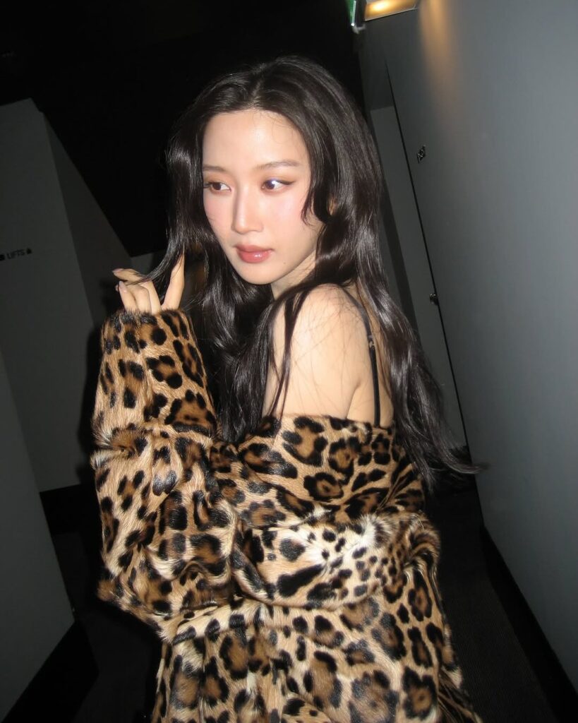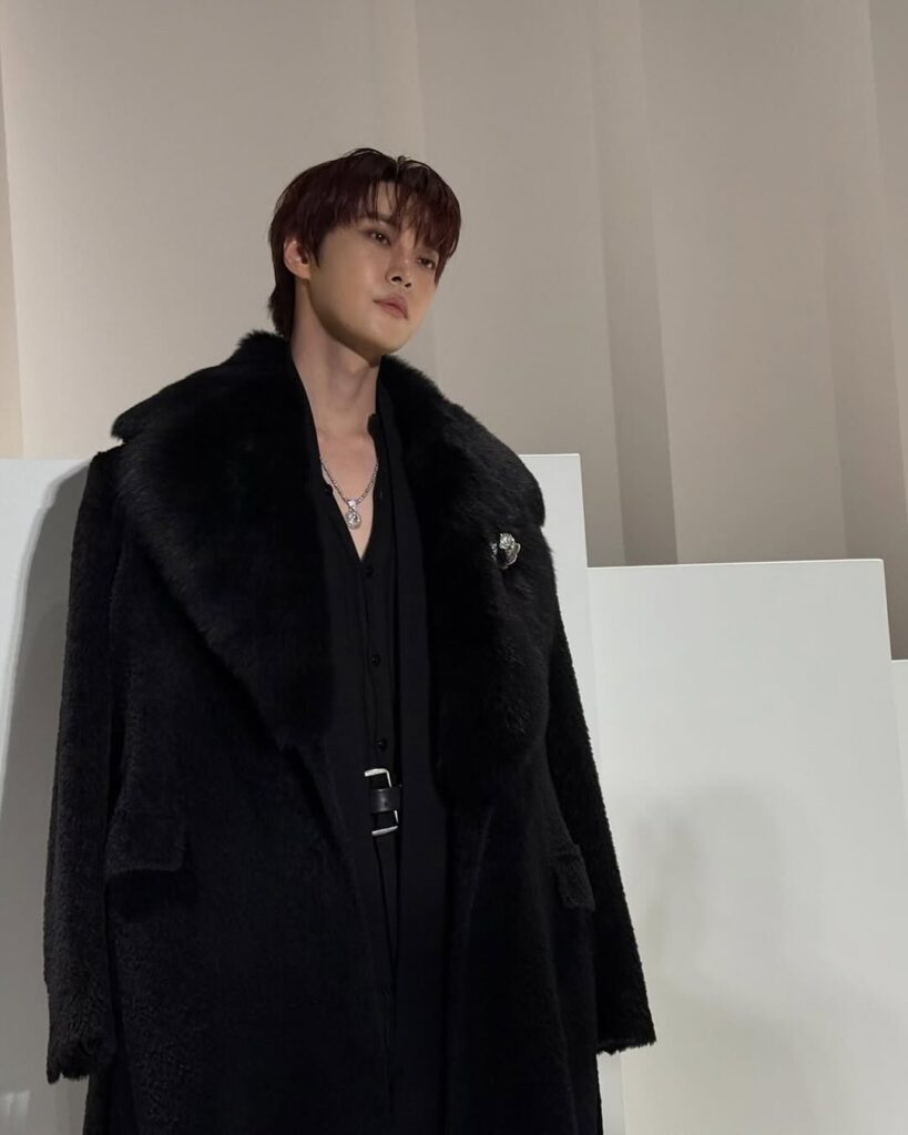 이번 SS26에는 퍼 아이템을 활용한 력셔리 무드가 특징인 만큼 문가영과 도영 모두 존재감이 큰 퍼 자켓을 착용했는데요. 돌체앤가바나의 상징인 시스루 이너로 슬림한 실루엣을 강조해 대비감을 주는 한편, 벨트 디테일로 기존에 볼 수 없던 캐주얼함을 더하고 있습니다.