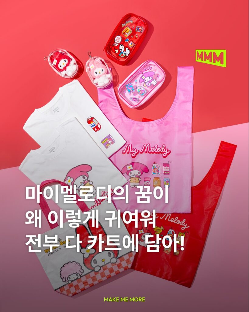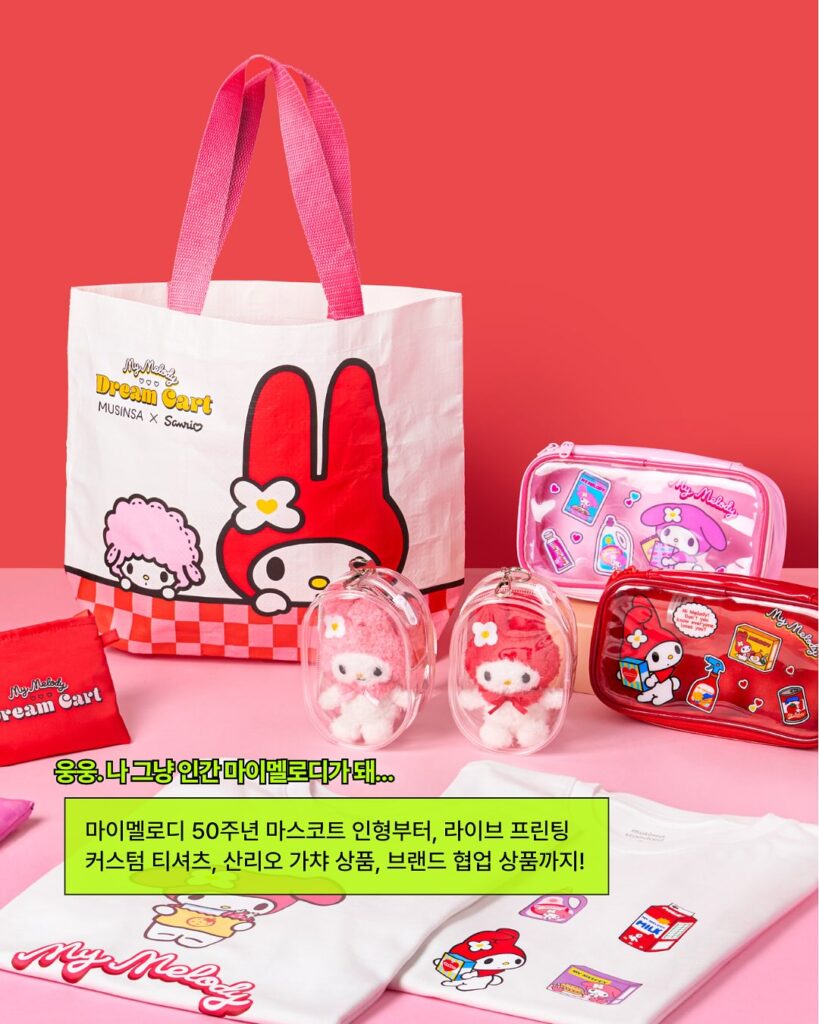 무신사(@musinsa.official)와 산리오(@sanrio_kr)가 만나 ‘마이멜로디의 드림카트’ 콜라보를 선보입니다! 이번 콜라보는 마이멜로디의 레드&핑크 컬러를 테마로 패션·뷰티·한정 MD까지, 알록달록한 꿈을 실은 마이멜로디의 카트를 만나볼 수 있는데요 🎀 협업 제품은 오는 10월 10일 마이멜로디의 드림카트 팝업에서 공개됩니다. 팝업 한정 단독 상품은 물론 커스텀 티셔츠까지 만들 수 있다니… 이건 안 갈 수 없겠죠…🩷