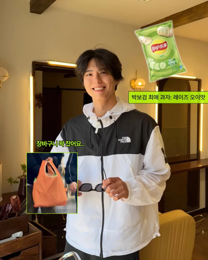 상하이에서 여행 중인 박보검(@bogummy)의 목격담이 쏟아지고 있습니다✨ 그는 별도의 경호 인력 없이 지인과 함께 쇼핑몰 일대를 오가며 여유로운 시간을 보내고 있는데요. 박보검의 장바구니 속을 가득 채운 과자가 화제입니다! 해당 과자는 바로 ’레이즈 오이맛‘! 첫맛은 짭짤하고 달콤하며, 끝맛은 시원하고 산뜻한 오이 향이 특징입니다. 박보검이 좋아하니까 에디터도 이제 좋아해 볼게요 🫠