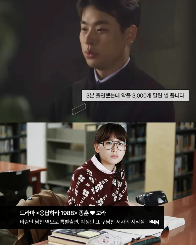 사실 박정민의 구남친 서사는 오래전, 드라마 <응답하라 1988>에서부터 시작되었습니다. 당시 바람난 남친 역으로 잠깐 등장했을 뿐인데 엄청난 악플을 받았을 정도로 캐릭터를 찰떡같이 소화했었죠. 이후 영화 <헤어질 결심>, 화사(@_mariahwasa)의 [Good Goodbye] 뮤직비디오에서 그 계보를 이어가며 국민 구남친이 됨..💔 구남친 포인트를 너무나 잘 잡아내는 박정민의 필모그래피가 영원하길 바라요.