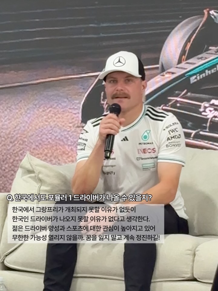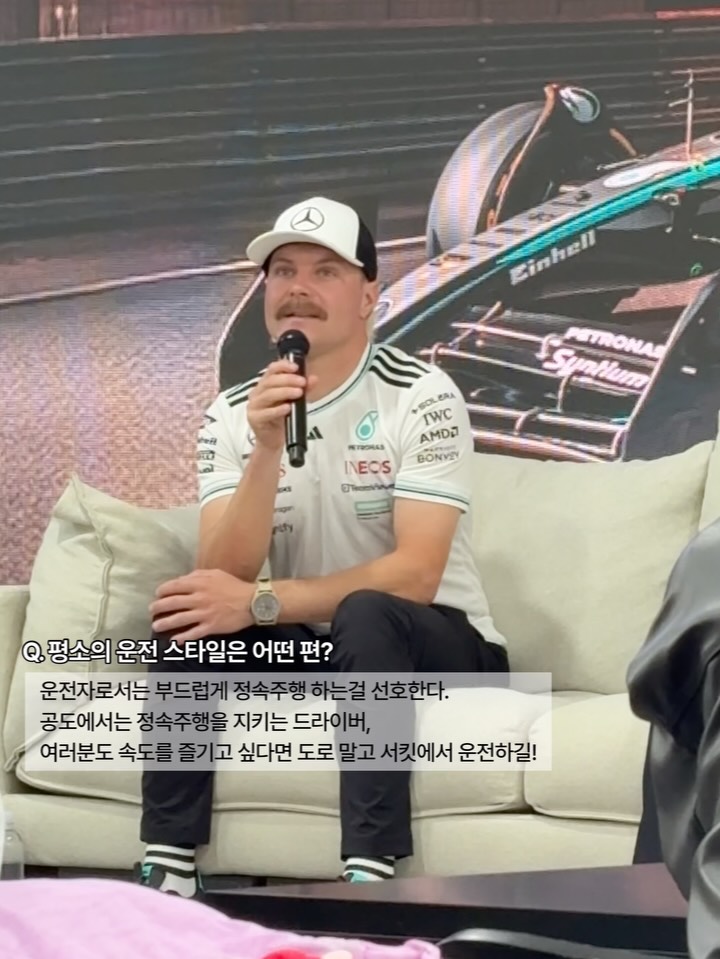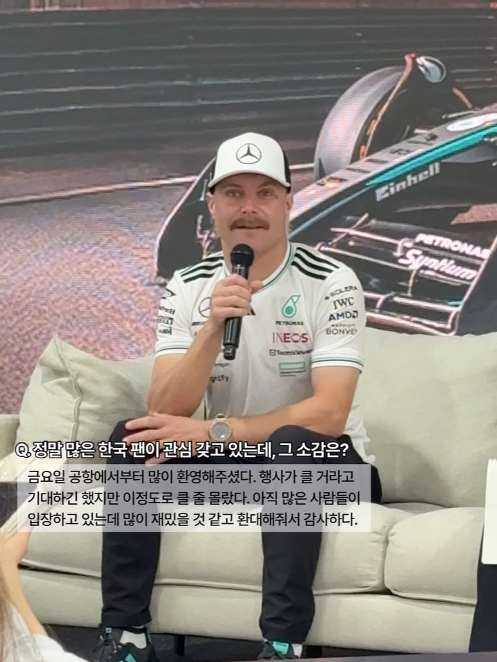 피치스 런 유니버스(@peachesrununiverse) 2025를 위해 한국에 찾아온 발테리 보타스(@valtteribottas)와 컨퍼런스 시간을 가졌습니다. 이번 행사에 대한 보타스 생각은? 한국 포뮬러원