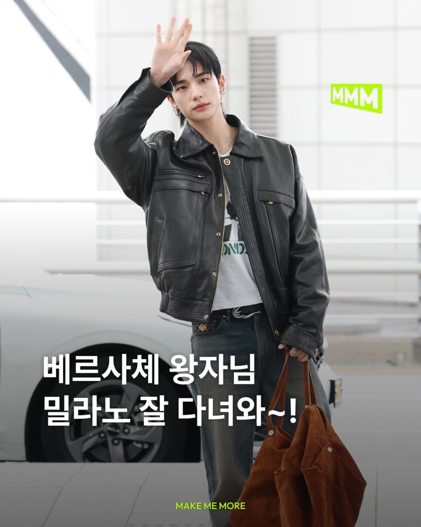 스트레이 키즈(@realstraykids)이 현진(@hynjinnnn)이 오늘(24일) 2026 봄/여름 베르사체(@versace)컬렉션 쇼 참석을 위해 인천국제공항을 통해 밀라노로 출국했습니다.