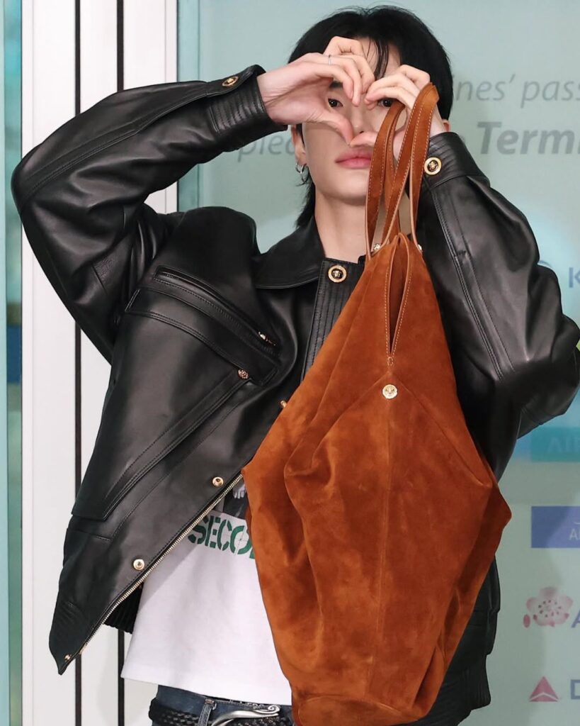 베르사체 가죽 재킷과 스웨이드 브라운 빅 백으로 완성한 공항패션은 그야말로 런웨이 그 자체였는데요. 곧 진행될 밀라노 패션 위크 베르사체 쇼에서 어떤 모습으로 나타날지 벌써 기대됩니다. 🖤🔥