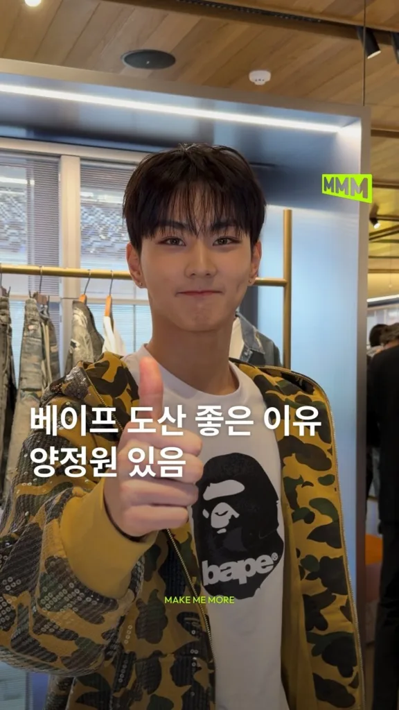 베이프(@bape.korea) 도산에서 엔하이픈(@enhypen) 정원을 만났습니다😻 내 마음에 베이프가 들어온 이유..? 양정원이 등장해서🐈 베이프가 잘 어울리는 남자 엔하이픈 정원을 영상으로 확인해 보세요📹