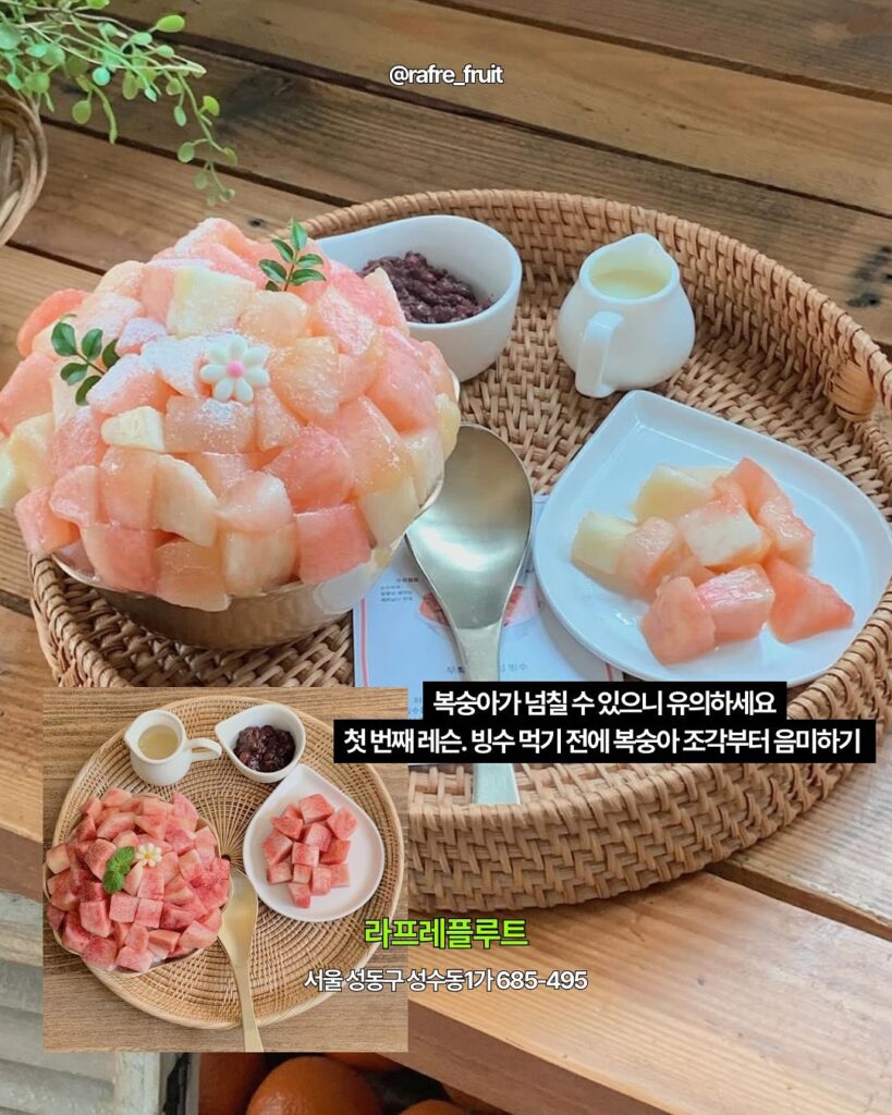 여름 하면 떠오르는 두 가지가 있습니다. 바로 복숭아와 빙수인데요. 날씨가 더워질수록 시원한 빙수를 찾는 사람들도 많아지고 있어요. 특히 보기 좋은 떡이 먹기도 좋다는 속담처럼 비주얼과 맛을 모두 잡은 과일 빙수가 인기입니다.🍧