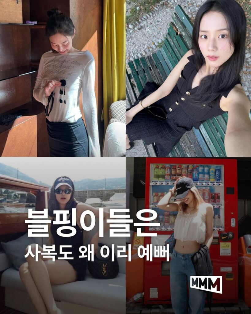 스타일리시한 패션 감각을 자랑하는 제니(@jennierubyjane)는 화이트 톱에 블랙 레이어드 팬츠를 매치해 시크한 스트릿 무드를 완성하고, 지수(@sooyaaa__)는 블랙 니트 원피스에 금장 버튼을 더해 클래식한 분위기를 연출했습니다.