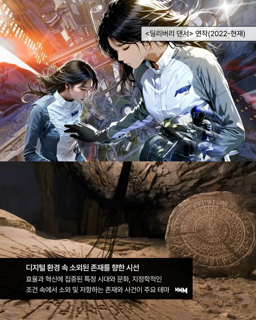 김아영의 작품에는 AI, VR과 같은 혁신적인 기술의 흔적이 고스란히 나타납니다. 디지털 기술 환경이 만연한 시대와 문화, 지정학적인 조건 속에서 나타나는 인간의 삶과 신체 감각을 다루고 있어요. 특히 작가의 SF적인 상상력은 단순히 미래에 그치지 않고, 사라져 가는 한국의 근현대사적인 시간의 층위와 충돌하며 다차원적인 우주론을 펼쳐보이고 있습니다.🌌