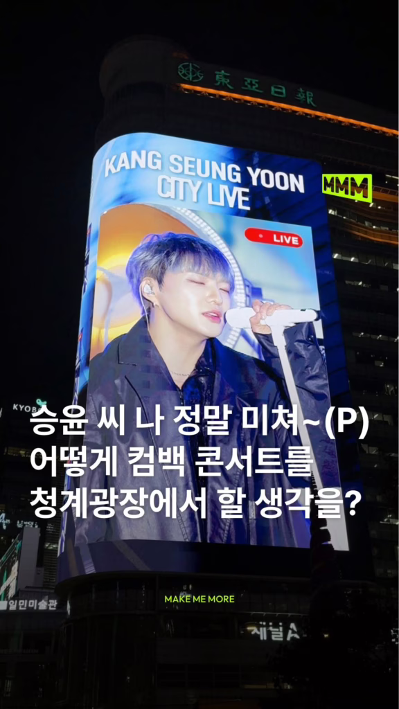 퇴근하던 에디터 눈에 띈 어디론가 향하는 사람들… 다들 퇴근 안 하고 어디 가세요~? 궁금한 건 못 참는 에디터가 따라가 봤습니다 🥷 그 끝은 광화문 청계광장! 강승윤(@w_n_r00)의 컴백 쇼케이스가 진행되고 있었는데요. 광장이 너무 넓어서 강승윤을 멀리서만 봐야 하나 싶었는데 이게 뭐죠? 에디터 눈앞에 나타난 룩스! 룩스에서 쇼케이스 현장을 생중계해 준 덕분에 가까이서 볼 수 있었다는 말씀~ 😭🫰🏽
