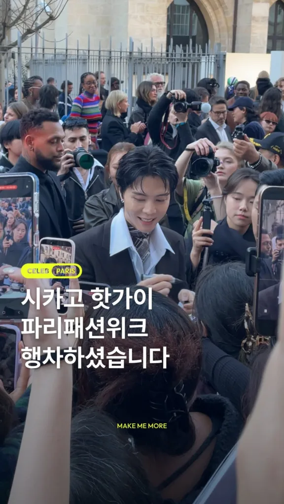 NCT 쟈니(@johnnyjsuh)의 아크네 스튜디오(@acnestudios) 출근길✨ 쏟아지는 사인 요청에 다정하게 눈 맞추며 웃어주쟈니🤍 오늘 쟈니 미소 덕분에 파리에 봄이 빨리 왔네요 🌸
