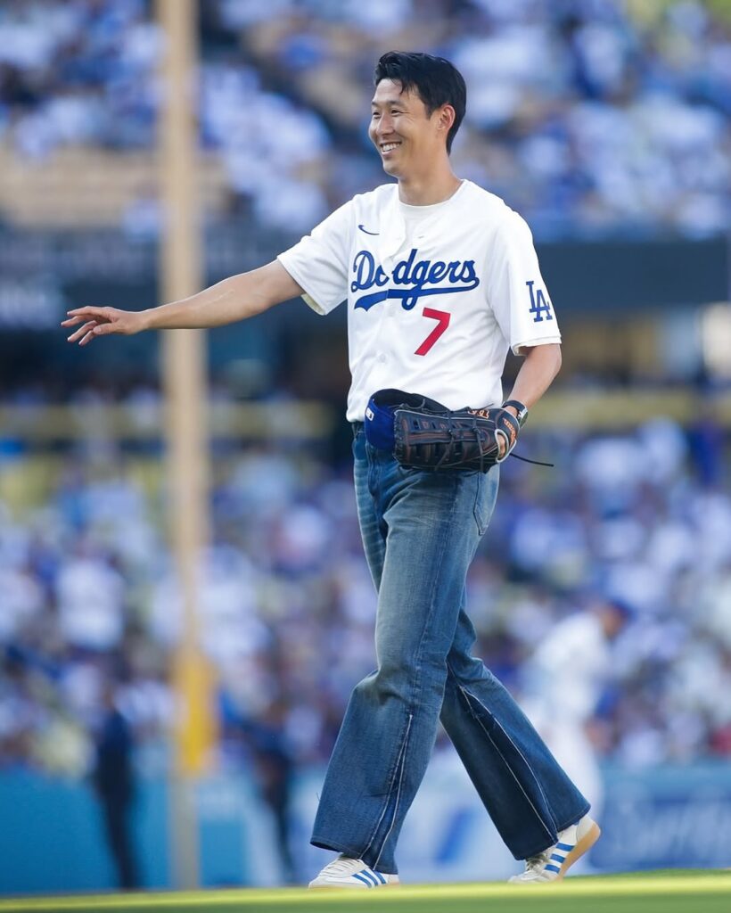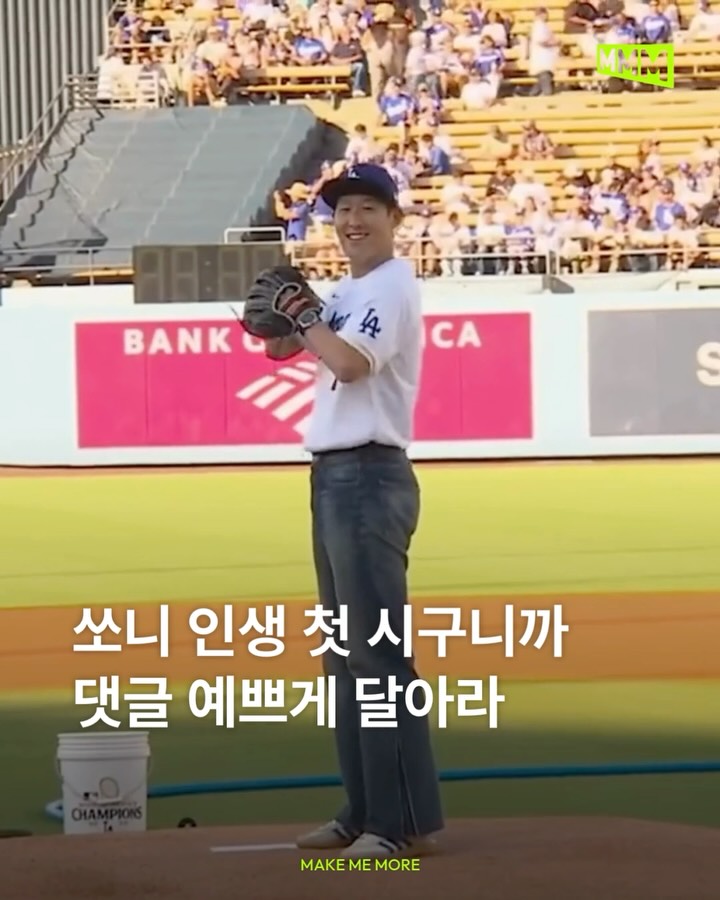 자 다들 주목💙 쏘니 인생 첫 시구하십니다.축구선수 손흥민(@hm_son7)이 미국 메이저리그(@mlb) LA 다저스의 홈구장 다저 스타디움에서 첫 시구를 선보였습니다! 다소 긴장한 듯 심호흡을 한 뒤, 곧바로 깔끔하게 공을 던졌는데요. 월클도 긴장을 하는구나 ..🥹 지난 22일에는 그의 새로운 소속 구단인 LAFC(@lafc)가 시구 연습 영상을 올리기도 했었죠. 연습 덕분일까요? 첫 시구를 완벽하게 마친 쏘니! 칭찬의 칭찬을 드려요 ⚾️📷 인스타그램