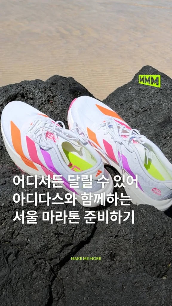 아디다스(@adidas)와 함께하는 서울마라톤(@seoul_marathon)을 앞두고 달려봤습니다🏃♀️ 아디제로만의 기술력으로 어디서나 달릴 수 있도록 고안된 아디제로 EVO SL과 제주도 해안가에서 몸을 풀어봤는데요, 반응성 높은 미드솔과 아디다스만의 쿠셔닝으로 피로도는 낮추고 능동성은 키워 일상에서도 기분 좋은 속도를 느낄 수 있었습니다👟