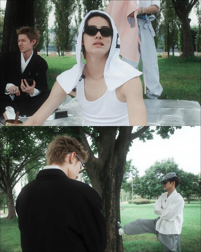 한복 저고리나 도포형 상의에 아이웨어를 매치하는가 하면, 느슨한 한복의 실루엣을 와이드 핏 의상처럼 힙하게 소화했습니다. 이런 한복이라면 데일리 룩으로도 손색 없겠네요.