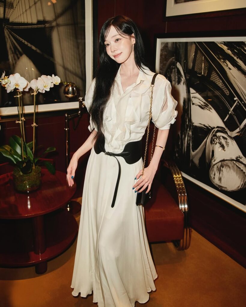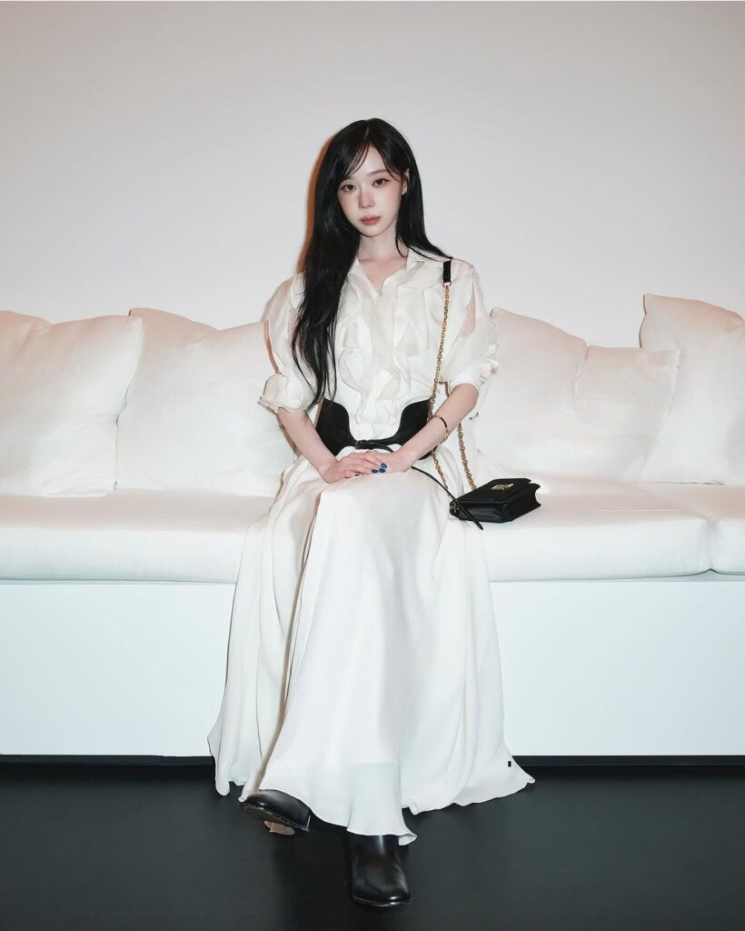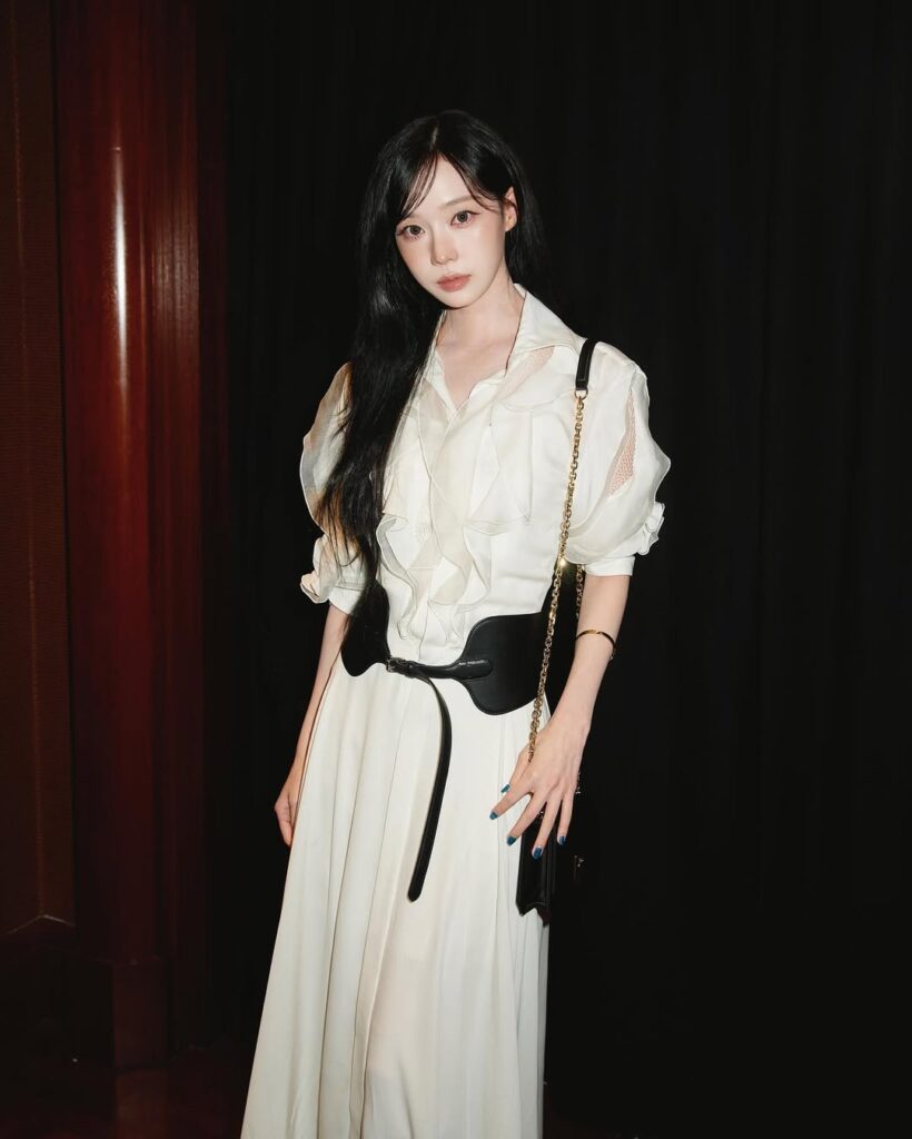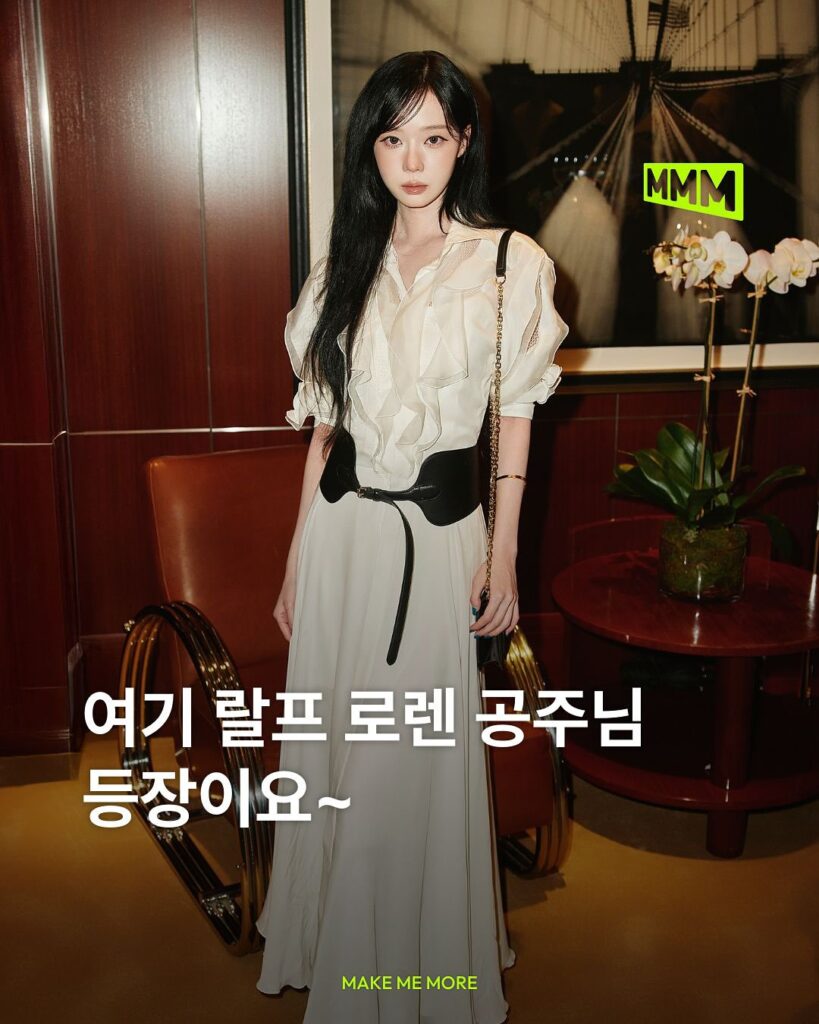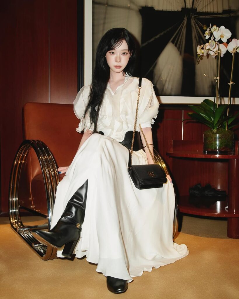 윈터는 랄프 로렌 2025 폴 시즌의 멜로니 실크 조젯 데이 드레스에 카프스킨 코르셋 벨트를 매치해 고전적인 우아함을 더했고, 포인트로는 ‘RL’ 모노그램이 돋보이는 RL 888 새틴 미니 크로스바디 체인을 선택해 세련된 분위기를 완성했어요. 이제는 명실상부 랄프 로렌 공주님으로 등극한 윈터의 자태, 지금 피드로 만나보세요!