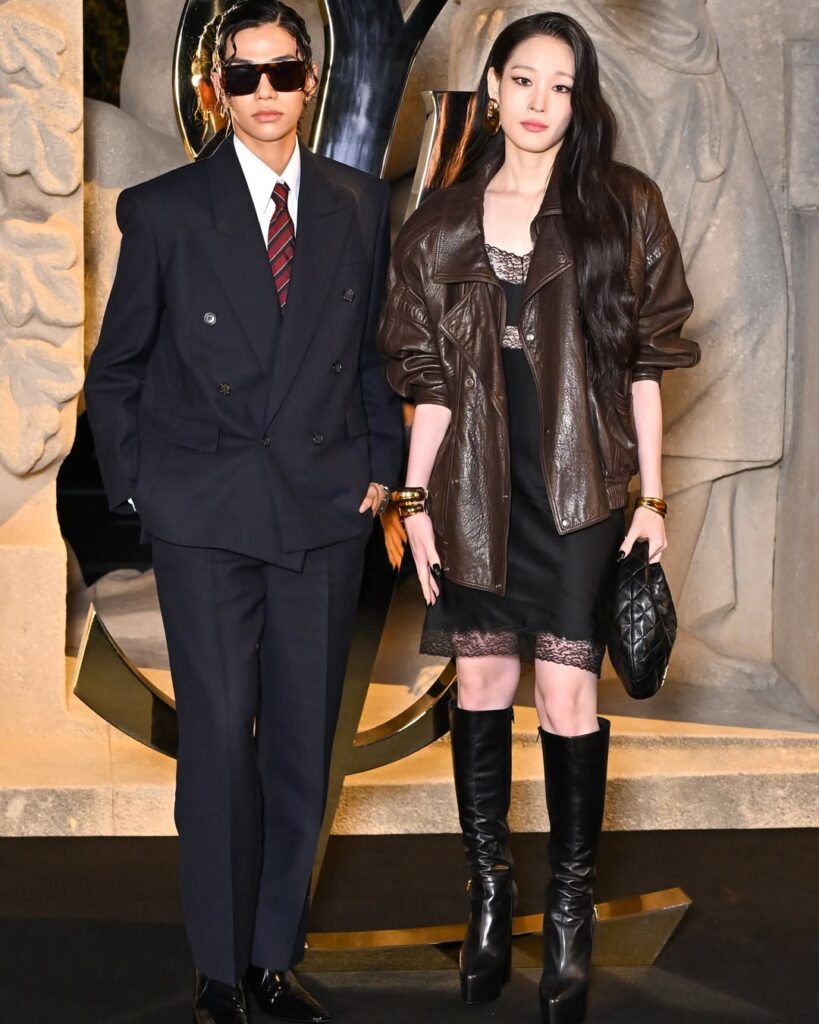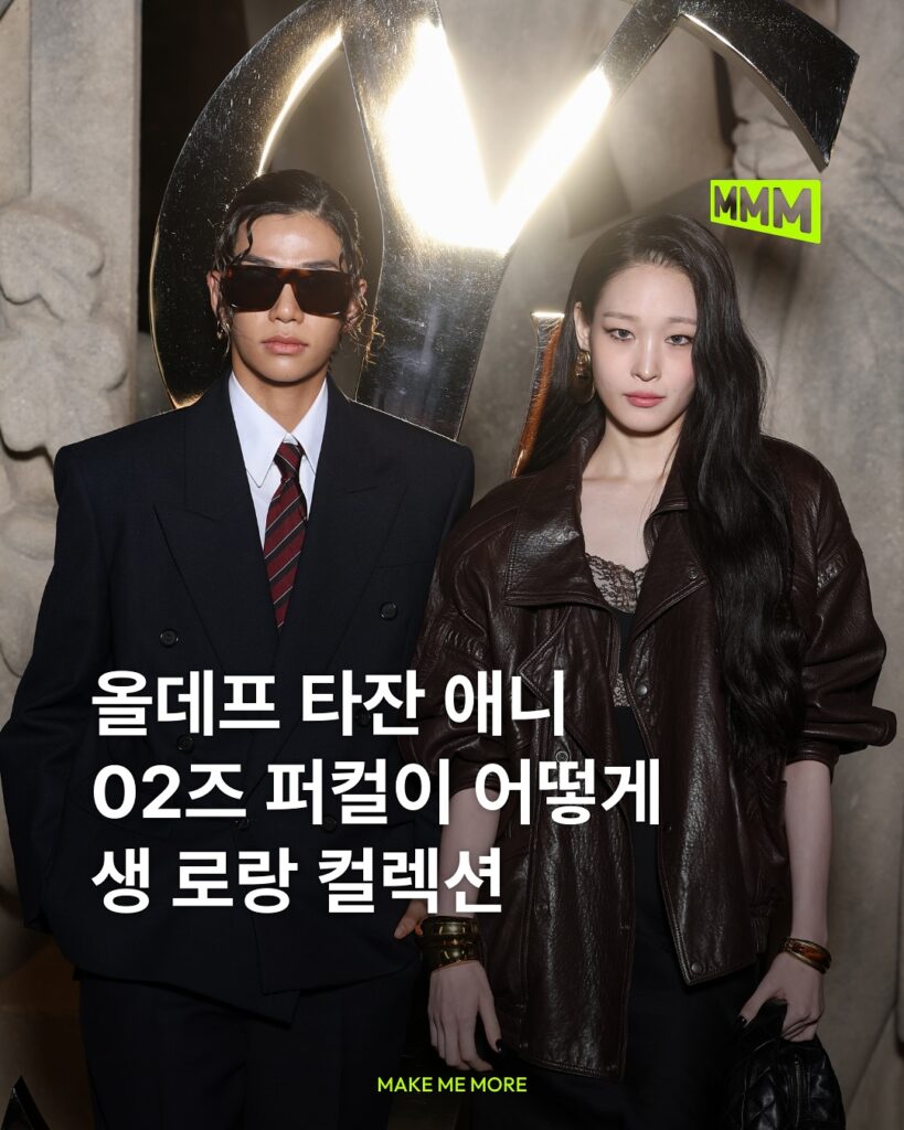생 로랑(@ysl) 26SS 컬렉션에 참석한 올데이 프로젝트(@allday_project)의 타잔(@tarzzan_boy)과 애니(@anniesymoon)🖤 애니는 레이스 디테일 드레스에 가죽 재킷, 생 로랑 백과 골드 액세서리로 룩을 완성했습니다. 타잔은 수트 셋업에 선글라스를 더해 카리스마 있는 분위기를 연출했죠. 생 로링 이렇게 잘 어울리는 02년생들 나는 정말 처음 봐 .. 🙊 애니와 타잔이 매치한 생 로랑 아이템들을 슬라이드를 넘기며 확인해 보세요.