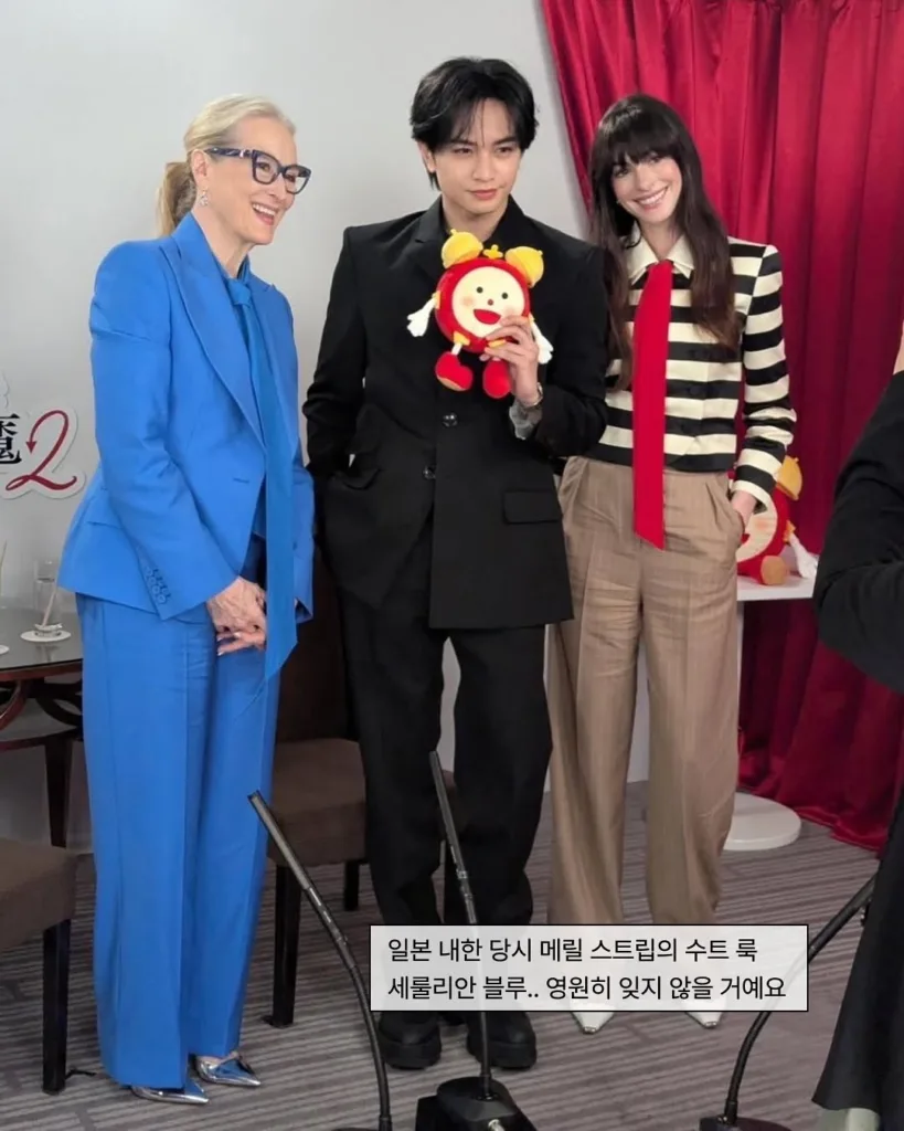 시즌 2 개봉을 앞둔 요즘, 이번에는 미란다 역을 맡았던 메릴 스트립이 세룰리안 블루 컬러 의상을 착용한 채 모습을 드러내고 있다는 사실!🫰