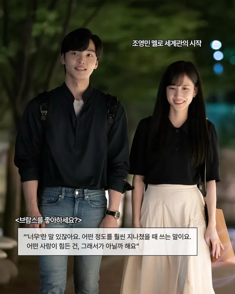 조영민 감독은 필모그래피만 봐도 멜로 드라마 권위자인데요. <브람스를 좋아하세요?><사랑의 이해><은중과 상연> 그리고 <러브 미>가 모두 그의 작품이라는 사실.📺