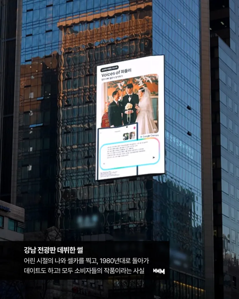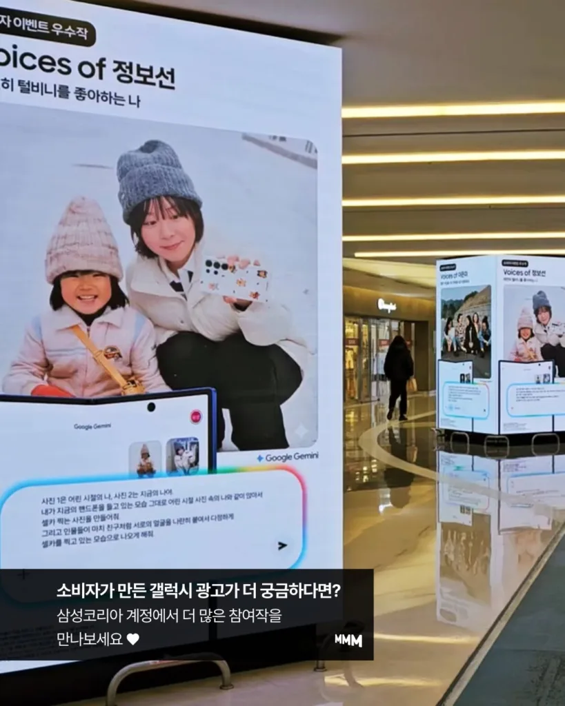 일상적인 순간이 AI를 만나 특별한 콘텐츠가 되는 순간! ✨ 최근 공개된 삼성(@samsungkorea) 갤럭시 ‘Voices of Galaxy’ 캠페인을 소개합니다. 이번 캠페인은 유저들이 직접 자신의 이야기를 갤럭시와 AI로 만들어내는 과정을 담았는데요. 실제로 이벤트 응모작 중 선정된 작품들이 광고로 제작되어, 현재 강남역, 홍대입구역 등 서울 주요 전광판에서 송출 중입니다. 어린 시절의 나와 함께 셀카를 찍고, 30년 전 부모님의 결혼식으로 돌아가 직접 부케를 받기까지..! 상상만 하던 일도 갤럭시와 함께라면 이루어지네 .. 🥹 소비자가 만든 갤럭시 광고가 더 궁금하다면, 삼성코리아 계정을확인해 주세요 👀