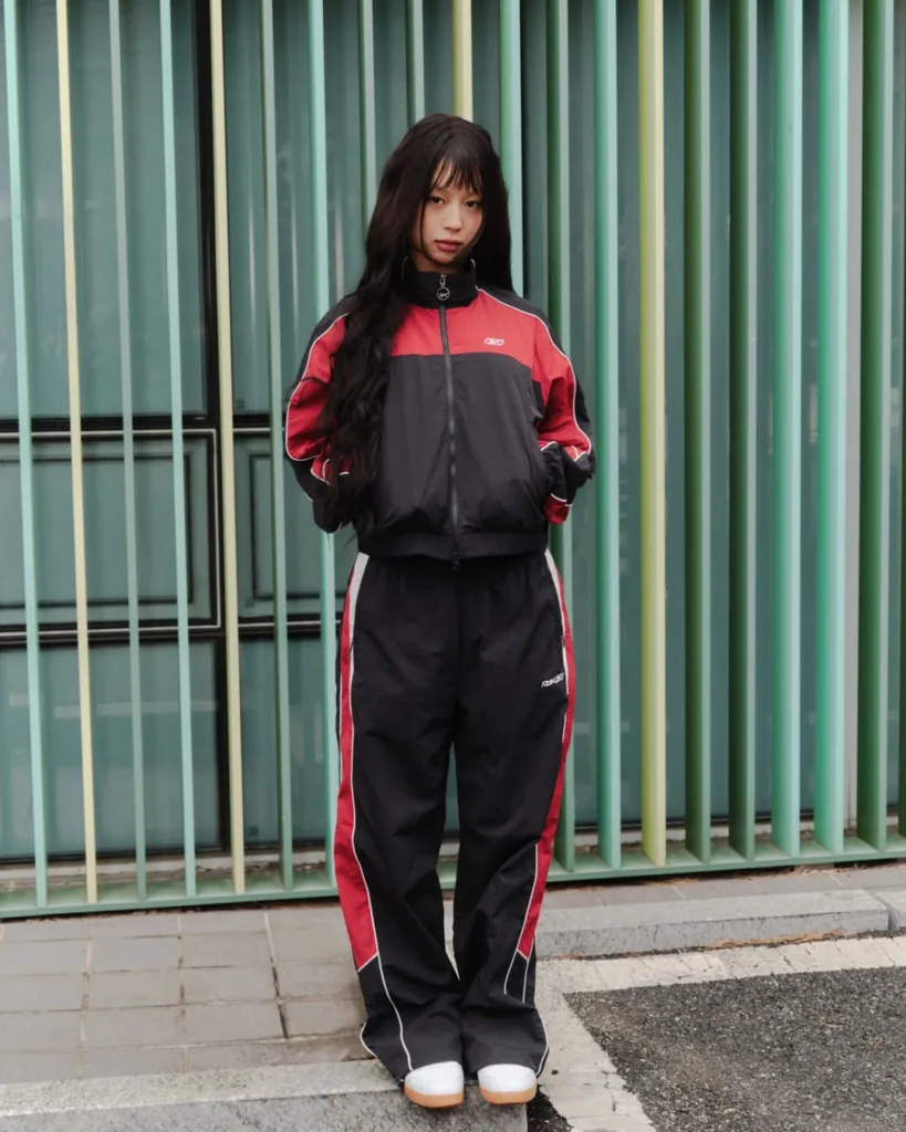 윈드브레이커에 배색 디테일로 포인트를 준 트랙팬츠를 더한 믹스앤 매치 스타일링이 포인트! 컬렉션 공개와 함께 무신사에