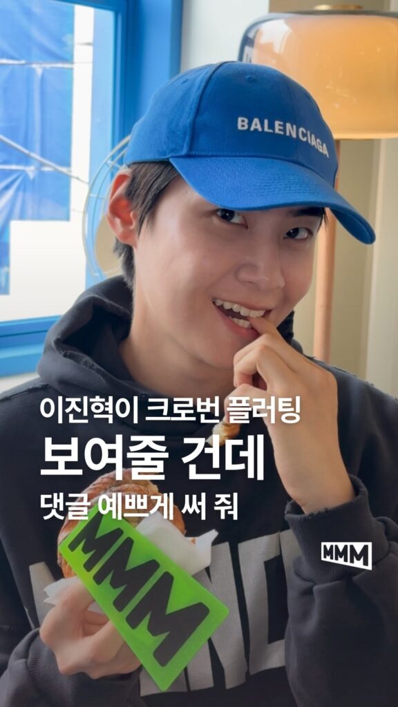 연남 스웨더(@sweather_official)에 나타난 이진혁(@ljh_babysun) 귀여운 크로번 플러팅과 함께 등장🥐✨ 다들 맛있게 먹었으면 댓글 예쁘게 써야겠지..🤫