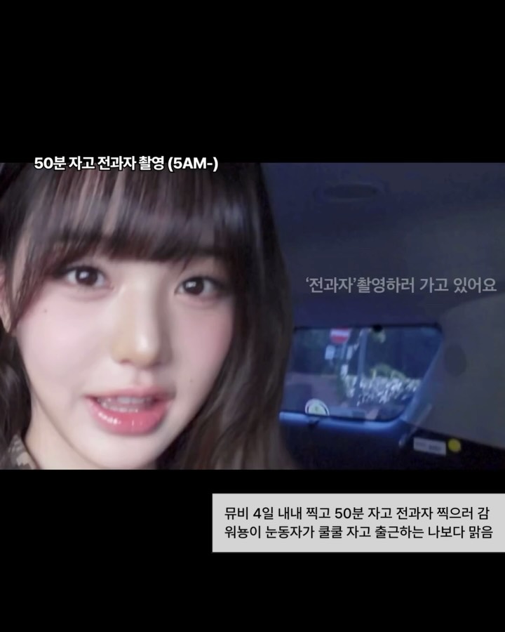 강민경(@iammingk) 유튜브 채널 ‘걍밍경’에 장원영(@for_everyoung10)의 브이로그가 공개됐습니다! 이 영상은 장원영이 강민경의 카메라로 담아낸 롤라팔루자 브이로그로, 바쁜 일상과 스케줄을 소화하는 모습이 그대로 담겨 있는데요. 특히 뮤직비디오를 4일간 촬영한 뒤, 겨우 50분 자고 화제의 ‘전과자’ 촬영에 나섰다는 비하인드가 공개되어 많은 이들을 놀라게 했죠.(심지어 이 스케줄 끝나고 운동까지 간 워뇽이 체력 진짜.. 뭐뭐뭐에요? 🥲) 이런 스케줄 속에서도 늘 ‘럭키비키’함과 긍정적인 마인드를 잃지 않는 원영 공주의 모습에 에디터는 넋을 놓고 말았답니다 … 완전 갓생 자극되는 장원영 브이로그 2탄만 기다려 💗