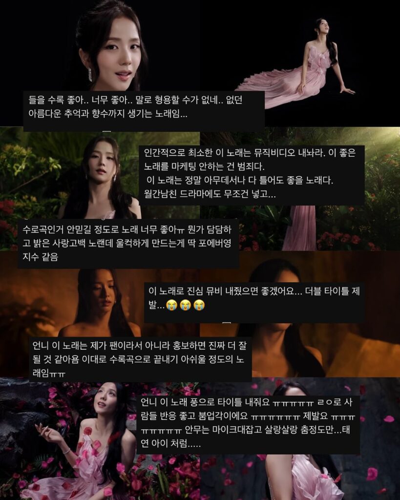 지수(@sooyaaa__) 팬들에게 오늘은 정말 특별한 날입니다. 팬들이 오랫동안 기다려온 ’Your Love‘의 뮤직비디오가 드디어 공식 공개되었기 때문인데요.