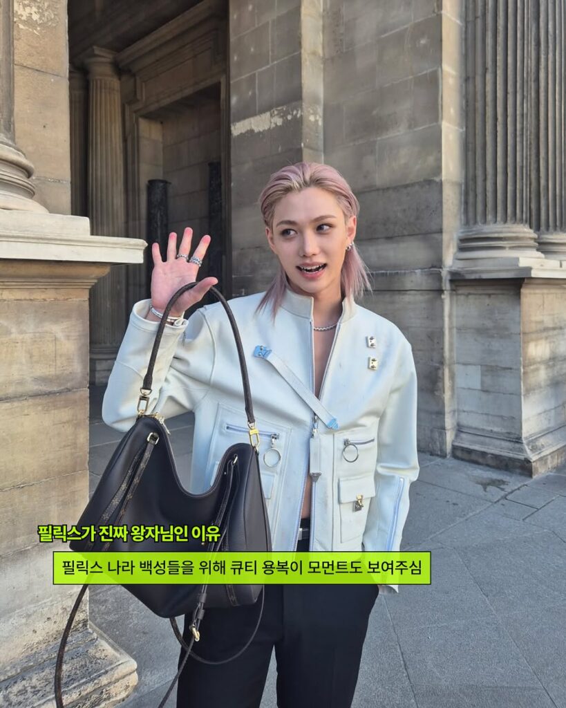 루이비통(@louisvuitton)의 26SS 쇼에 참석한 필릭스(@yong.lixx)왕자님 👑