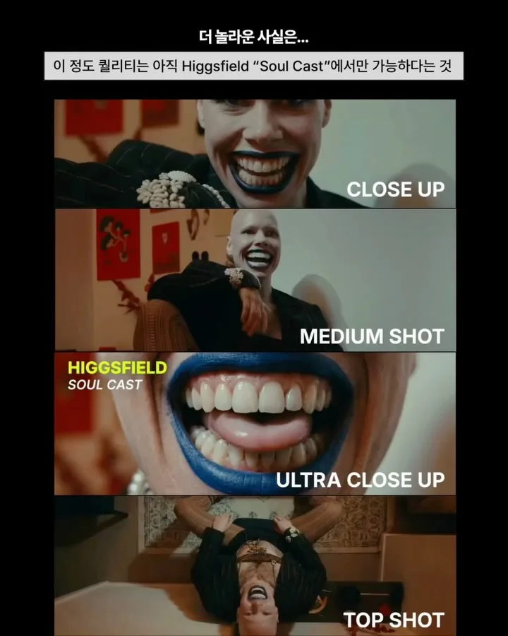 힉스필드(@higgsfield.ai)에서 새로운 AI 툴을 또다시 선보였습니다. 바로 “Soul Cast” 툴인데요! 해당 AI 툴은 스튜디오가 직접 배우를 만들고 복제하고 소유까지 할 수 있게 해주는 기능입니다. 제작사가 Soul Cast를 통해 원하는 배우를 묘사하면 얼굴•나이•분위기 전부 커스텀 가능하고, 실제 인간의 감정 표현과 연기력까지 학습한 모델이 단 몇 분 만에 만들어집니다. 힉스필드 도대체 어떤 툴을 만든거에요🤩