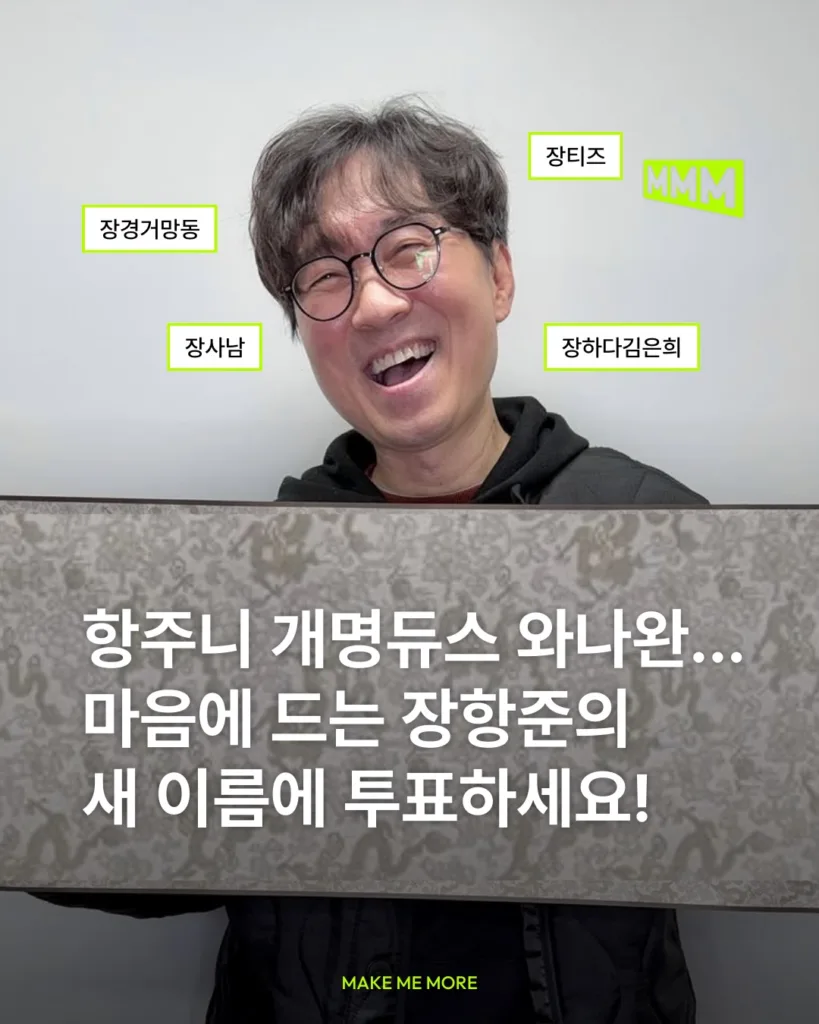 항주니 개명듀스 와나완… 마음에 드는 장항준의 새 이름에 투표하세요!