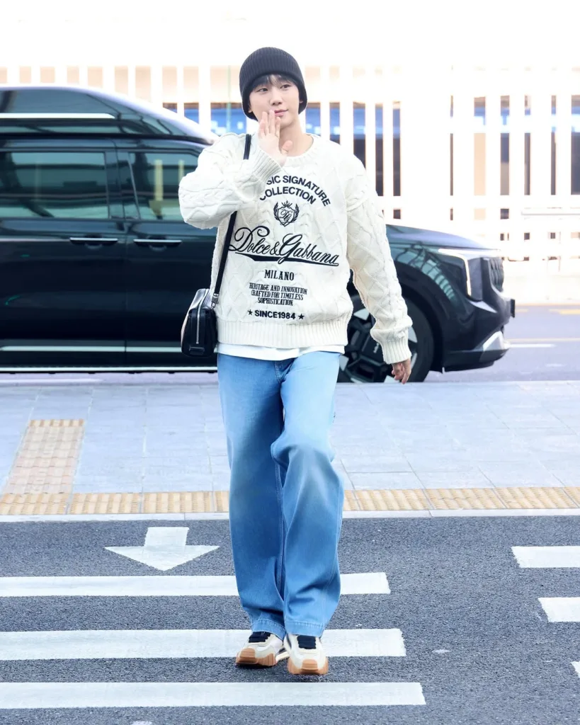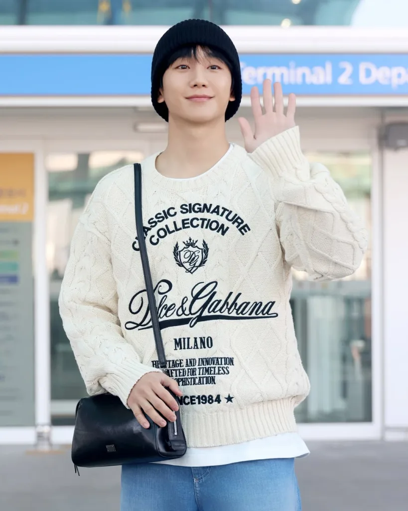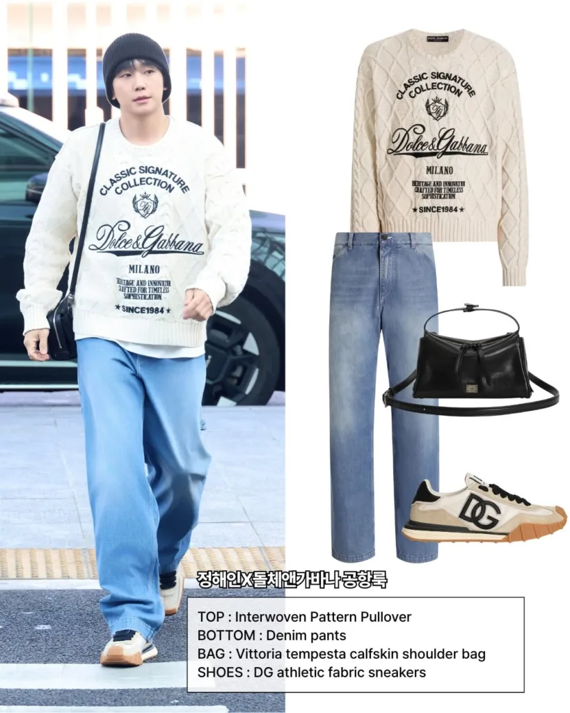 정해인(@holyhaein)이 밀라노 패션위크 참석을 위해 공항을 찾았습니다. 정해인은 돌체앤가바나(@dolcegabbana)의 럭셔리한 무드가 돋보이는 니트에 연청 컬러의 데님 팬츠를 매치해 연하남의 정석을 보여줬는데요. 에디터가 밥 사주는 누나 하면 안 될까요..💕 밀라노에서 뵐게요 해인배우님 🫶🏻