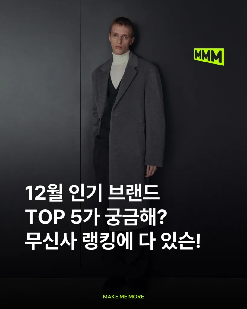 12월 인기 브랜드 TOP 5가 궁금해? 무신사 랭킹에 다 있슨!