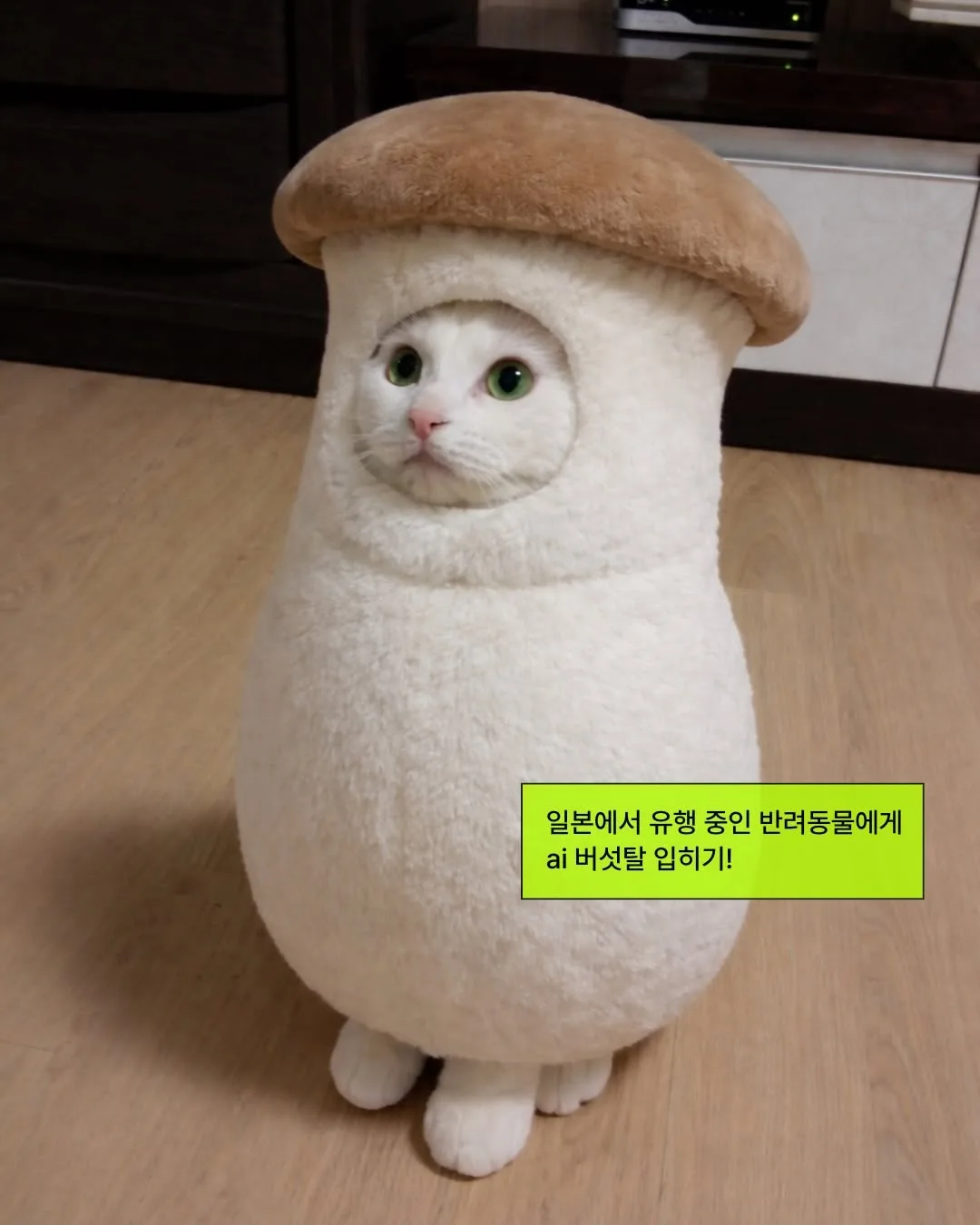 ai 버섯 인형탈 입히는 게 유행이라고? 우리 애도 당장 입혀봐야지 🍄