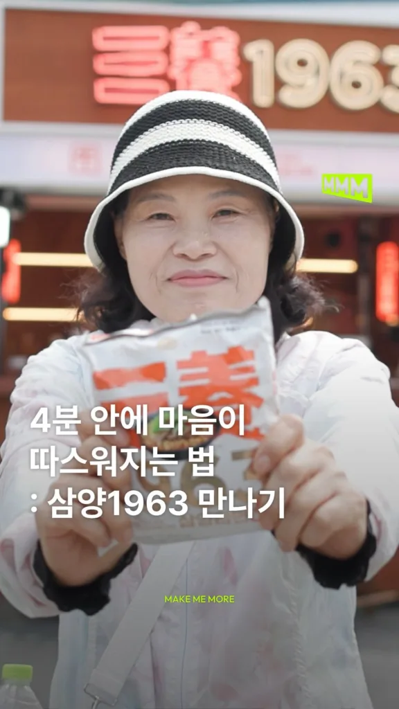 대한민국 최초 라면인 삼양라면이 오늘날 ‘삼양1963’으로 다시 돌아왔습니다! 이를 기념하며 삼양식품(@samyangfoods)이 특별한 캠페인을 선보였습니다. 이번 캠페인은 단순한 한 끼가 아닌 우리 일상에 가장 가까운 음식이 된 삼양1963이 이제는 사람들의 마음을 따뜻하게 채워주고 있는 모습을 담아냈는데요.
