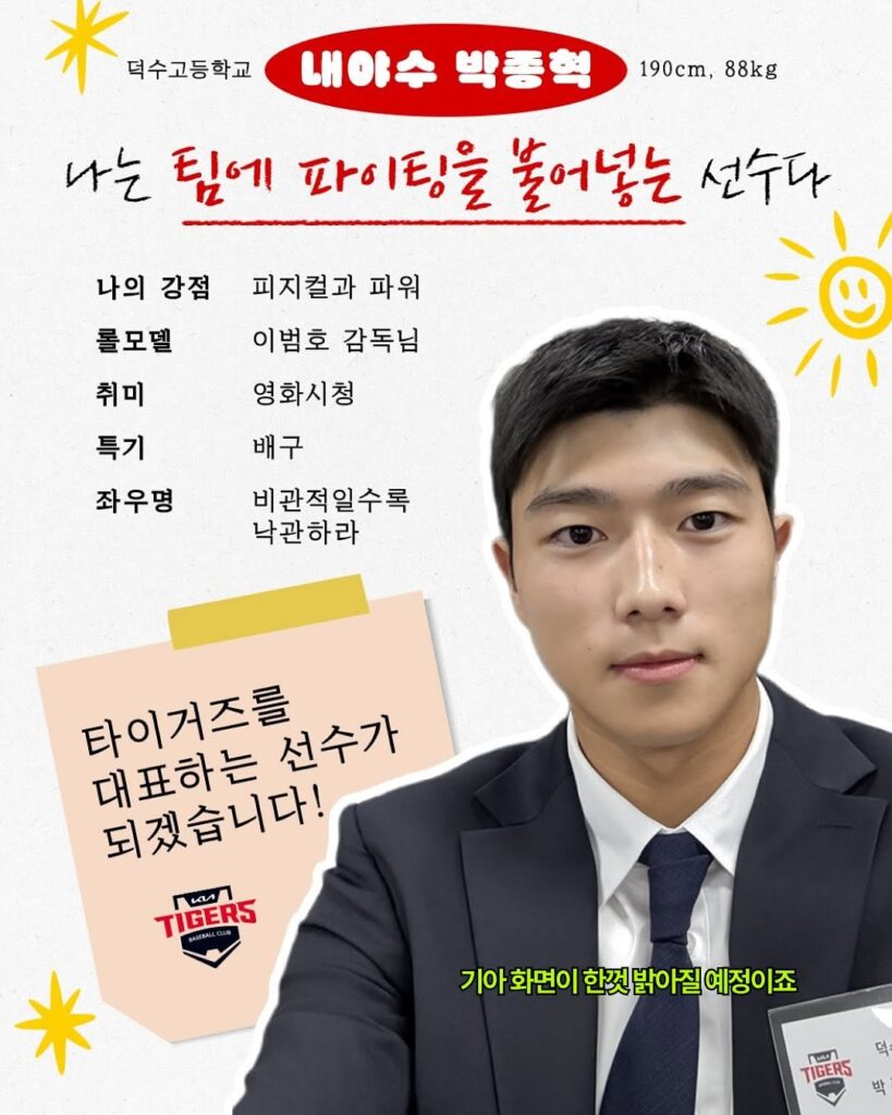 KIA 타이거즈 신인 박종혁의 등장에 화면이 밝아진 사건이다